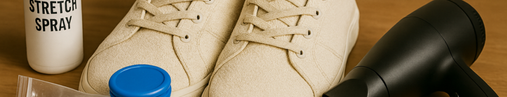 Canvas and synthetics are tough and less flexible, but still stretchable. Use the hairdryer method, the ice bag trick, or newspaper stuffing. Shoe stretchers can work too, but be gentle to avoid misshaping.